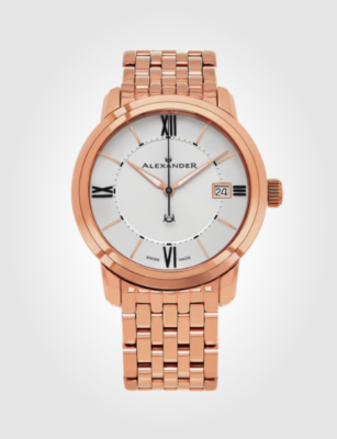 Stainless Steel Rose Gold Tone Case on Stainless Steel Rose Gold Tone Bracelet, Silver Dial
