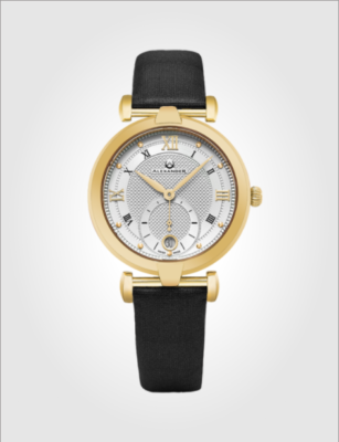 What’s more effortlessly stylish than black and gold? The Olympias A202 pairs a simple black satin strap with a dynamic yellow gold case for maximum impact with minimal fuss. The silver dial and gold hands add understated elegance.