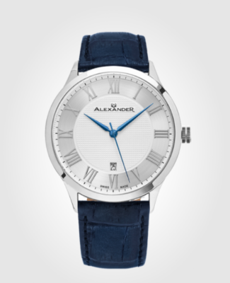 Triumph A103 // Stainless Steel Case on Blue Embossed Genuine Leather Strap, Silver-patterned Dial